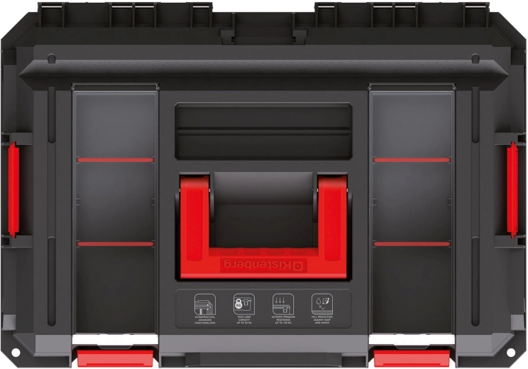 Professzionális, igényes körülményekhez tervezett, X‑BLOCK sorozatú moduláris szerszámosláda. Tartós, bordázott kialakítást, porszennyeződés- és fröccsenő víz elleni tömítést, legfeljebb 50 kg teherbírást, valamint modulok összeépítésének lehetőségét kínálja. Egyes modellek alumínium síneknek köszönhetően a fedél stabil munkapaddá alakítható, a modulok közvetlen terhelése akár 120 kg, így fellépőként is használhatók.