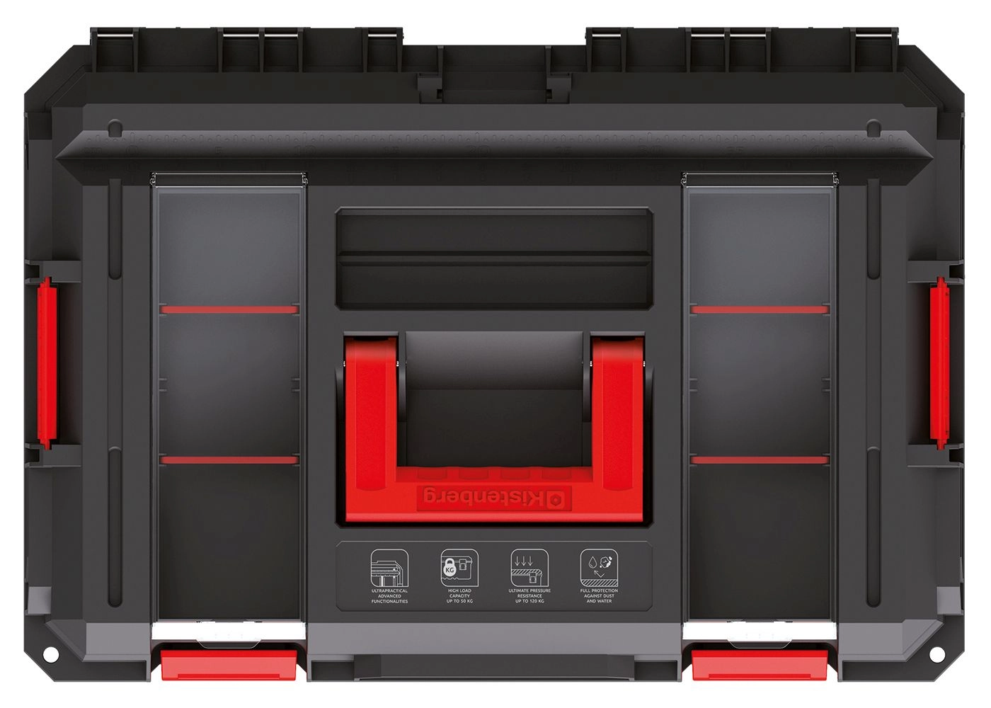 Professzionális, mindennapos használatra tervezve: akár 50 kg kapacitást kínál, a modulok közvetlen terhelése eléri a 120 kg-ot, így praktikus fellépőként is szolgálhatnak. Egyes fedélváltozatok alumínium sínekkel készülnek, melyek lehetővé teszik a fedélből kompakt, stabil munkapad kialakítását precíz vágáshoz vagy szereléshez.