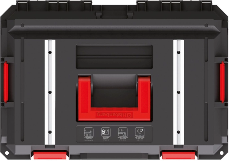 A Kistenberg X BLOCK TECH szerszámos koffer olyan profiknak készült, akik nap mint nap nehéz körülmények között dolgoznak. A bordázott szerkezetnek, a megerősített sarkoknak és a tömített fedélnek köszönhetően megbízhatóan védi a szerszámokat a portól, a víztől és a mechanikai sérülésektől. A fedél részét képezik az alumínium sínek és a speciális „G” leszorítósínek, amelyekkel a koffer stabil munkafelületté alakítható.