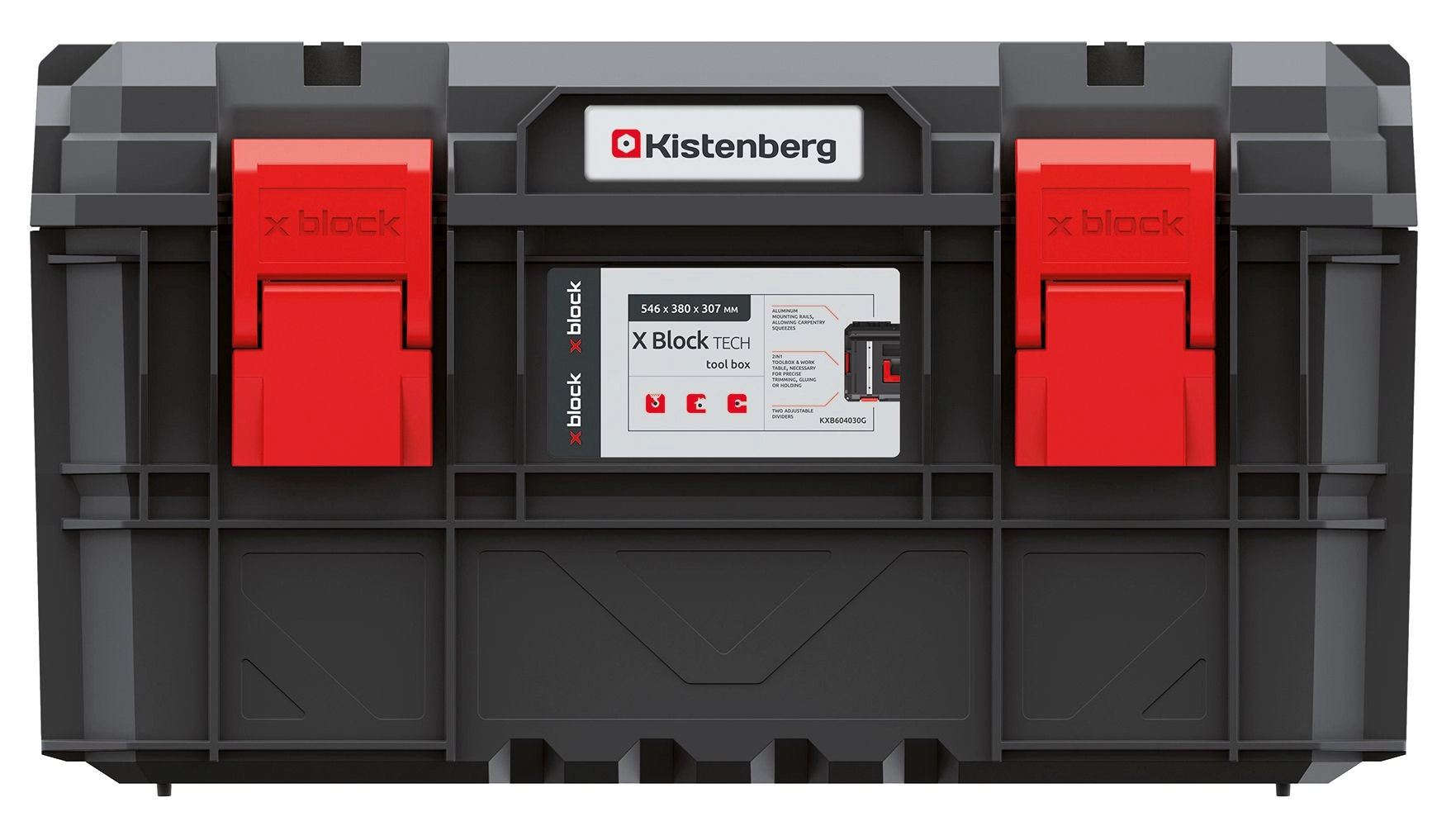 A koffer az X BLOCK moduláris sorozat része – a tartós reteszelő mechanizmusokkal könnyen összekapcsolható és biztonságosan egymásra rakható más dobozokkal.