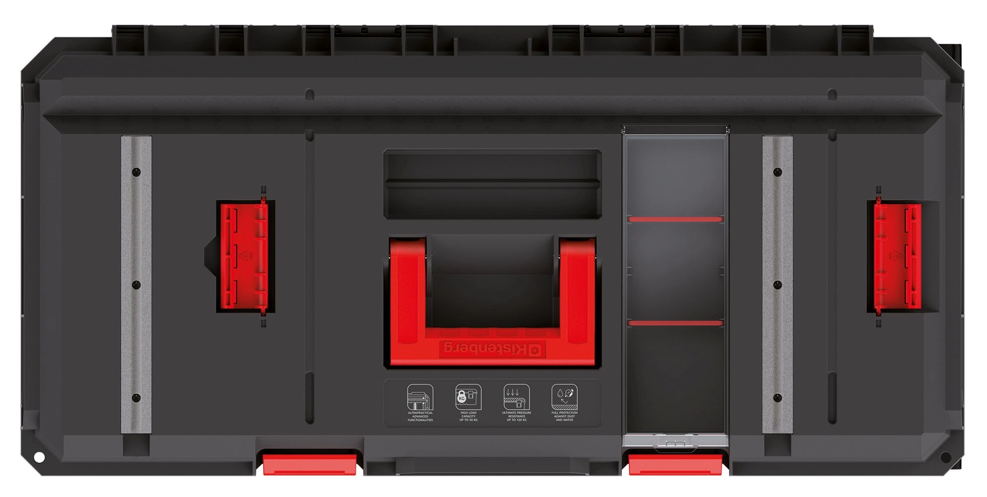 • Védőtömítés por és víz ellen a szerszámok biztonságos tárolásához.