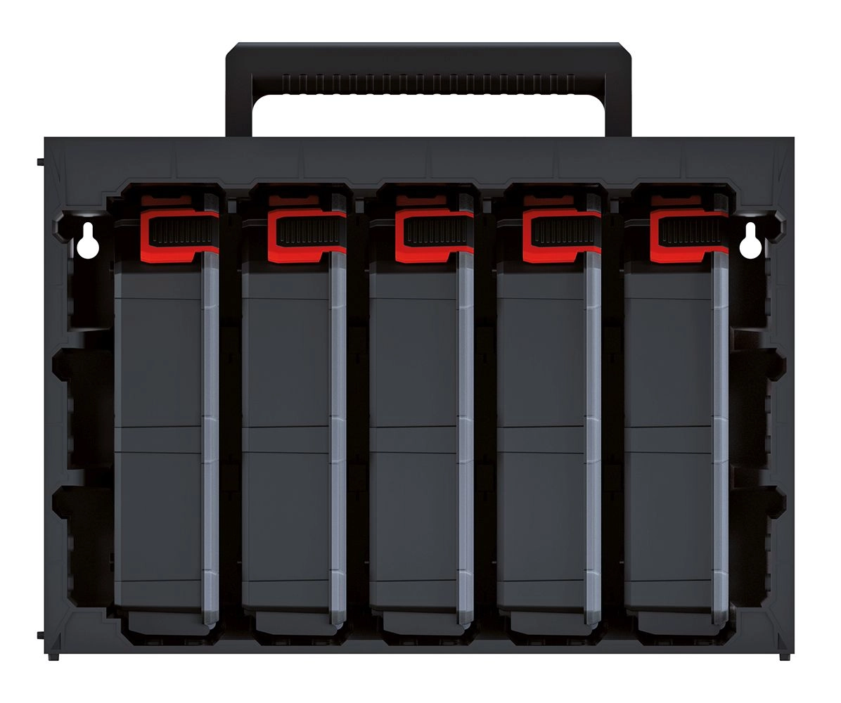 A TAGER CASE szekrény 5 szervezővel ideális választás garázsba, műhelybe és háztartásba. Az öt különálló rekeszes doboz gyors válogatást tesz lehetővé csavarokhoz, tiplikhez, bitekhez vagy egyéb apró kiegészítőkhöz. Az átlátszó fedeleknek köszönhetően mindent első pillantásra lát, így nem kell hosszan keresgélnie.