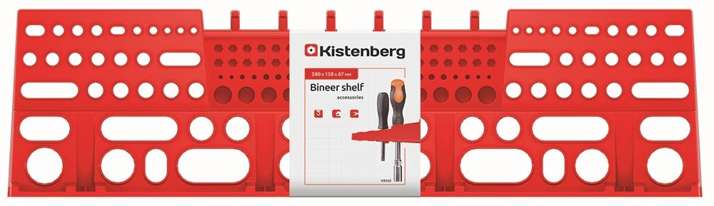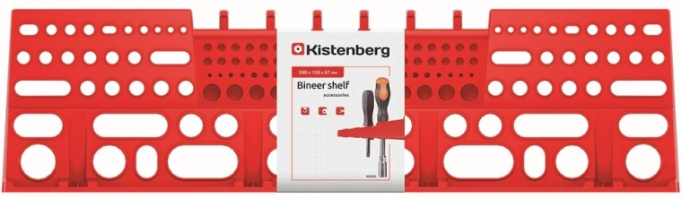 Praktikus szerszámtartó BINEER panelekhez, 580 × 158 mm méretben, piros színben, amely segít műhelyét, garázsát vagy technikai helyiségét tökéletesen rendszerezni. Tartós műanyagból készült a hosszú élettartam érdekében, és gyors, egyszerű telepítést kínál, valamint kompatibilis különféle kéziszerszámokkal.