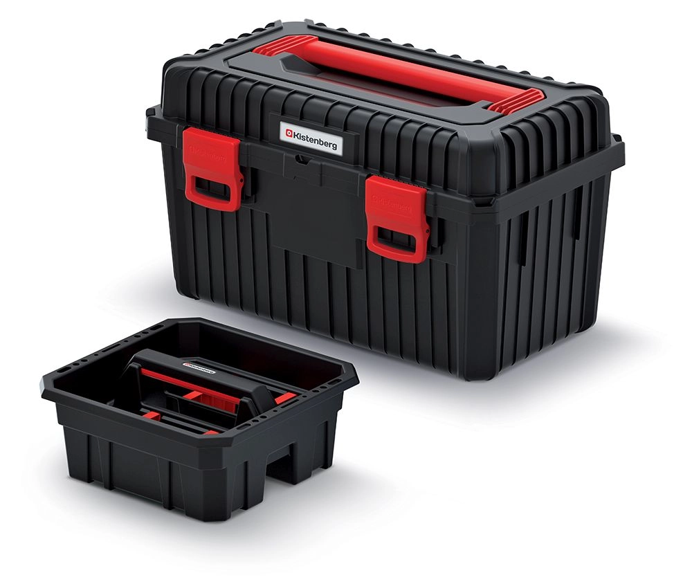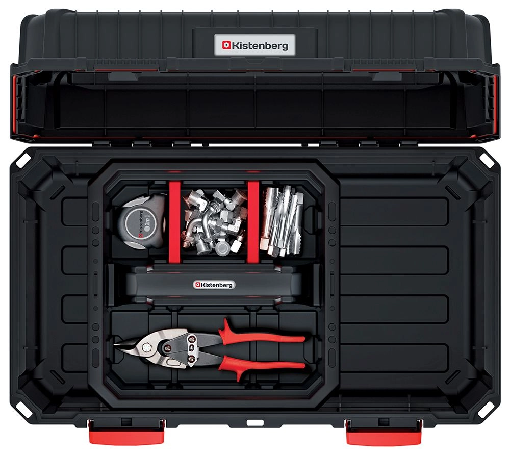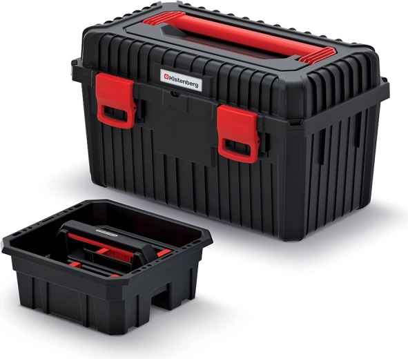 Az ergonomikus műanyag fogantyú kényelmes hordozást biztosít, míg a műanyag zárak szállítás közben is biztonságban tartják a tartalmat. A tartós kivitel elegáns fekete színben ideális műhelybe, garázsba és helyszíni szerelésekhez is.