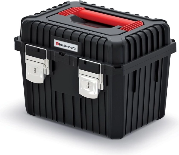 A kompakt, mégis tágas Kistenberg Heavy szerszámos láda fekete színben professzionális és hobbi felhasználásra egyaránt készült. A strapabíró bordázás növeli a szilárdságot, a fémkapcsok biztos zárást adnak, a központi, lakattal zárható zóna pedig magasabb szintű biztonságot tesz lehetővé.