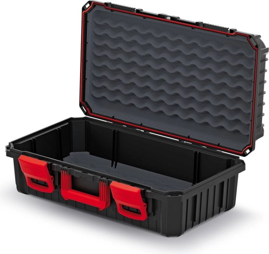 Ez a masszív koffer a szerszámok és a törékenyebb eszközök biztonságos szállítására és áttekinthető tárolására készült. A fedélben lévő hullámos hab és a testben található formázható betét hatékonyan nyeli el az ütéseket, így maximális védelmet nyújt mindennapi használat és hosszabb utazások során is.