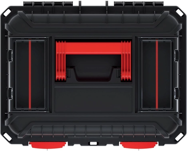 - Áttekinthető rendszerezés: fedélben lévő rekeszek és kivehető betét apró alkatrészekhez és szerszámokhoz.