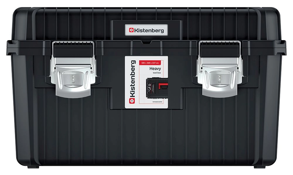 Masszív szerszámos láda profiknak és hobbifelhasználóknak, 585 × 360 × 337 mm méretben, amely strapabíró felépítést, a biztonságos záráshoz fém zárakat, praktikus külső rekeszeket a fedélben és kivehető rendezőt kínál apró alkatrészekhez.
