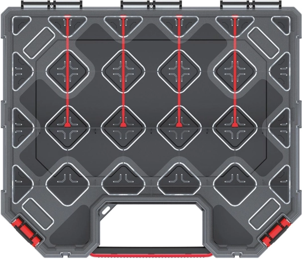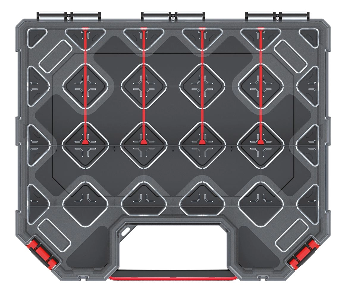A kompakt 284 × 243 × 105 mm-es méreteknek köszönhetően elfér polcokon, szekrényekben és szerszámos kofferekben is. A masszív szerkezet és a megbízható klipszek gondoskodnak róla, hogy minden a helyén maradjon, legyen szó műhelyről, építkezésről vagy autóról.