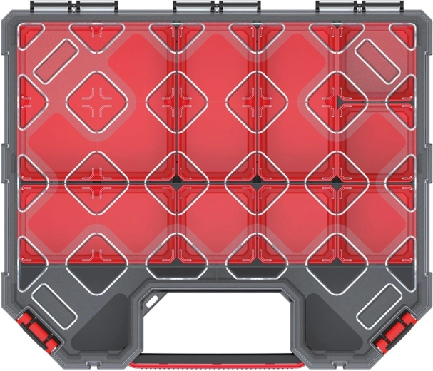A kivehető belső dobozkáknak köszönhetően a csavarok, tiplik, bitek, gyöngyök vagy más apróságok rendszerezése maximálisan áttekinthető. A magasabb profilú rendező több helyet biztosít a nagyobb alkatrészeknek, és stabil tárolást nyújt keveredés nélkül szállítás közben.