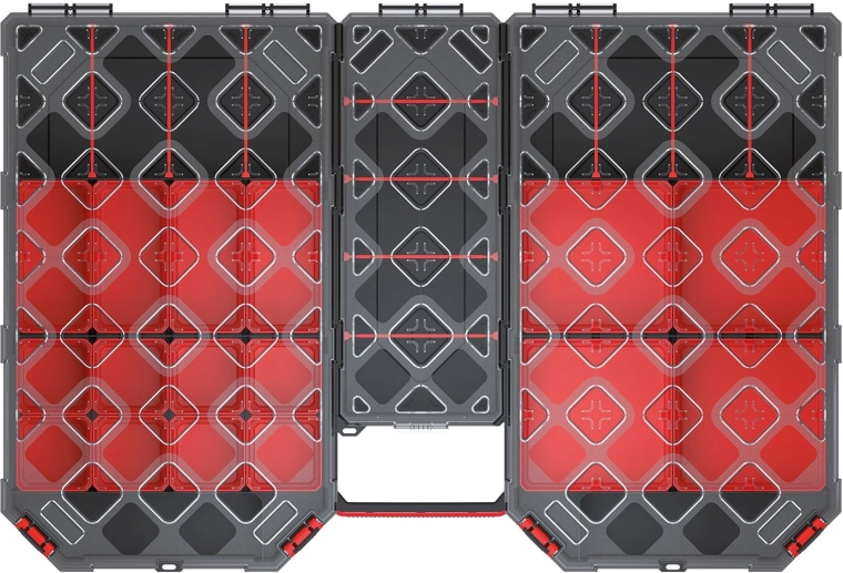 A magas TAGER CARBO PLUS rendező ideális választás szakembereknek, barkácsolóknak és szerviztechnikuskoknak. A strapabíró polikarbonátból (PC) készült átlátszó fedél védi a tartalmat, és lehetővé teszi a gyors vizuális ellenőrzést nyitás nélkül. A variálható válaszfalaknak vagy önálló dobozkáknak köszönhetően könnyedén kialakíthatja a saját elrendezését az alkatrészek típusa és mérete szerint.