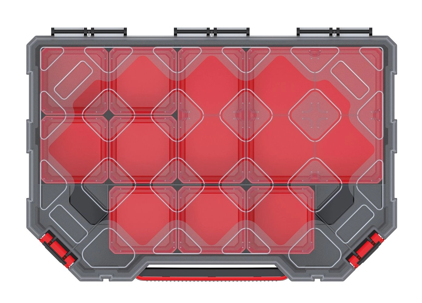 Tartson rendet a műhelyben, otthon vagy az irodában a könnyű és tartós TAGER rendezővel. Az átlátszó PP fedél gyors vizuális ellenőrzést tesz lehetővé, védi a tartalmat a portól és megbízható záródást biztosít. Kompakt méreteinek köszönhetően könnyen elfér a fiókokban és a táskákban.