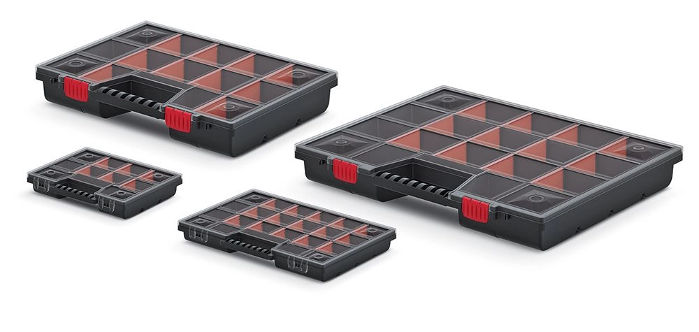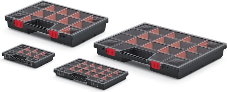 Tartson rendet a műhelyben, garázsban vagy otthon a NOR rendszerezővel, amelyet a 18 rugalmasan állítható rekesznek köszönhetően pontosan az igényeihez igazíthat. Az áttetsző fedél azonnali rálátást nyújt a tartalomra, így mindig gyorsan megtalálja a megfelelő elemet.