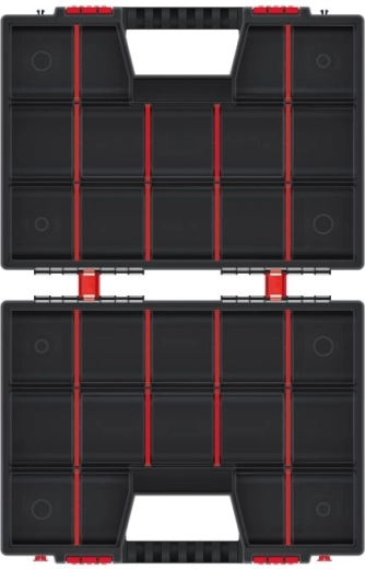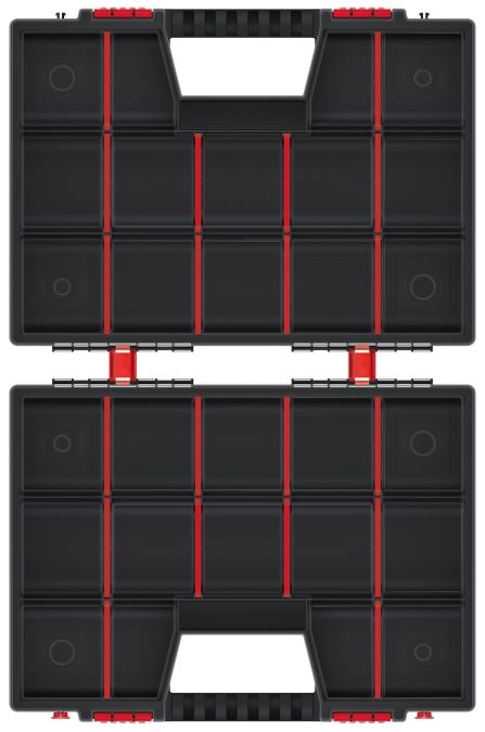 A belső teret könnyedén testre szabhatja a kivehető elválasztókkal – alakítson ki pontosan olyan rekeszeket, amilyenekre szüksége van. A masszív műanyag, a dupla zárak és az egymás felé fordított fedelek mindent biztonságban tartanak még hordozás közben is.