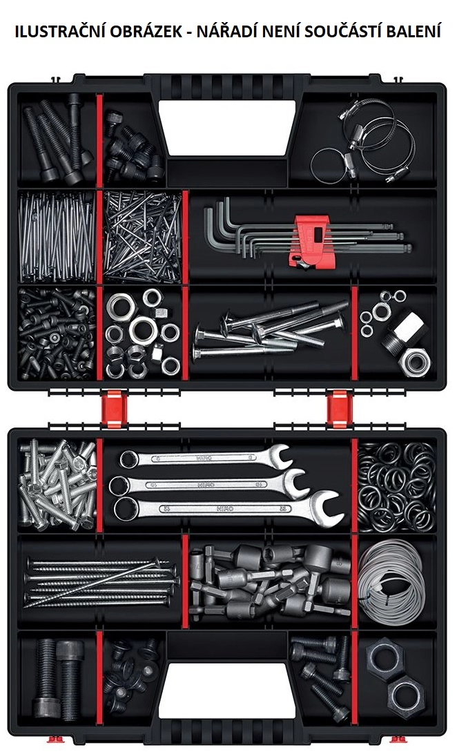 Átlátható és tartós megoldást keres apró alkatrészek, csavarok, bitek vagy horgok tárolására? A NOR DUO átgondolt rendező két dobozzal, amelyeket együtt is használhat, vagy pillanatok alatt szétválaszthat. Az átlátszó fedelek lehetővé teszik a tartalom azonnali vizuális ellenőrzését nyitás nélkül, így időt és energiát takarít meg.