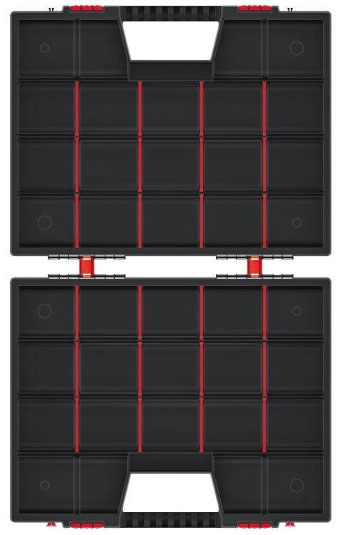 Tartson rendet az apró szerszámokban és alkatrészekben a NOR DUO rendszerezővel. A két doboz használható együtt, vagy egyszerűen szétválasztható, és magával viheti csak azt, amelyikre éppen szüksége van. Az állítható rekeszek lehetővé teszik a belső elrendezés pontos igazítását a projektjeihez és az anyagokhoz.