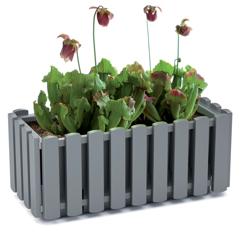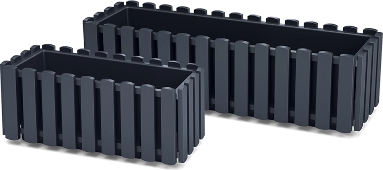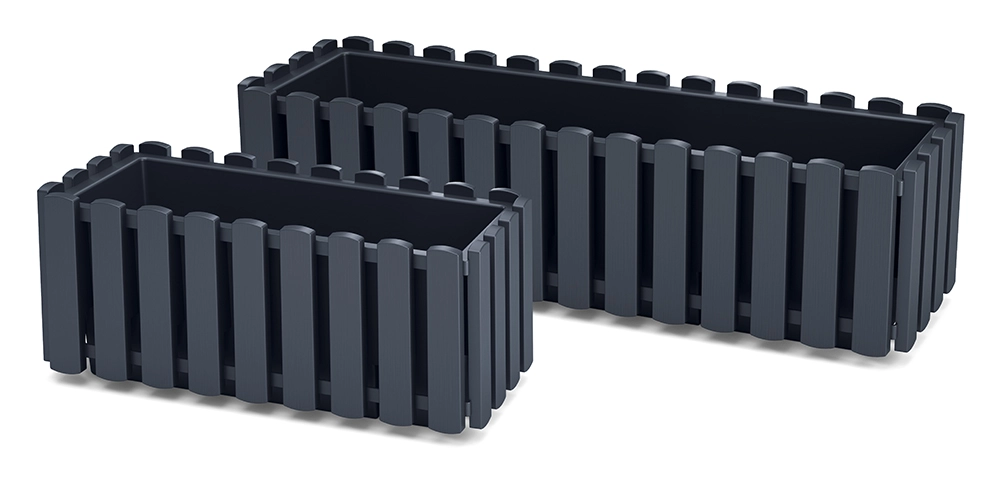 Hozzon létre zöld oázist a korláton kompromisszumok nélkül. Ez a balkonláda a fa léceket idéző megjelenésnek köszönhetően ötvözi a modern stílust a rusztikus bájjal. Az antracit árnyalat könnyen illeszkedik bármely kültérhez, letisztult és időtálló hatást kelt.