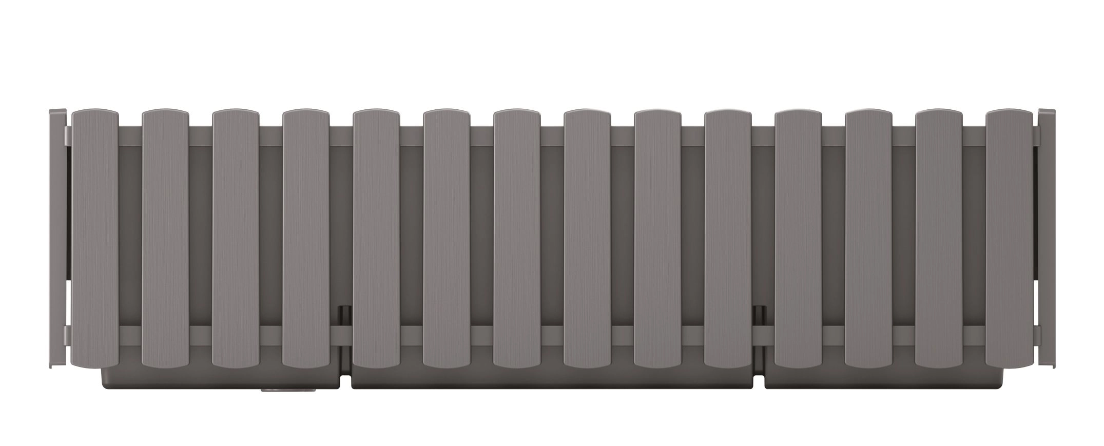 Az elegáns, 58 cm hosszú, szürke kő színű láda ideális virágok, fűszernövények és kisebb zöldségek termesztésére erkélyeken és teraszokon. A függőleges „lécekkel” díszített dekor egyszerre modern és romantikus, könnyen összehangolható a kültéri bútorokkal és kiegészítőkkel.