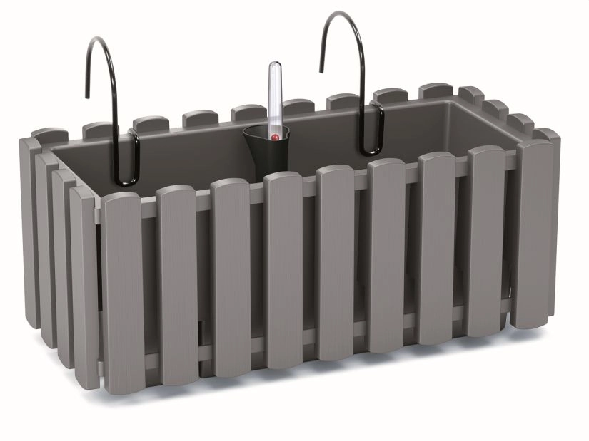 Alakítson ki zöld oázist kis helyen is. A 58 cm hosszú BOARDEE FENCYCASE függesztett balkonláda a fa lécek hatású, időtálló megjelenést praktikus funkciókkal ötvözi a fűszernövények, virágok és díszfüvek gondtalan neveléséhez. A fém tartók erős és biztonságos rögzítést biztosítanak a legtöbb balkonkorláton.