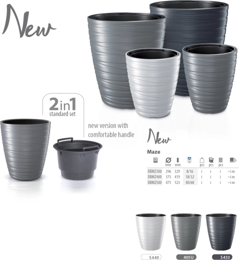 Elegáns MAZE virágcserép 29,6 cm átmérővel fehér színben, modern megjelenéssel és univerzális dizájnnal beltérre és kültérre egyaránt. Tartós műanyag anyaga ellenáll a kedvezőtlen időjárásnak, a belső betét pedig megkönnyíti a növényápolást és az öntözés ellenőrzését. 16 l űrtartalmával elegendő helyet biztosít fűszernövényeknek, szobanövényeknek és virágzó növényeknek.