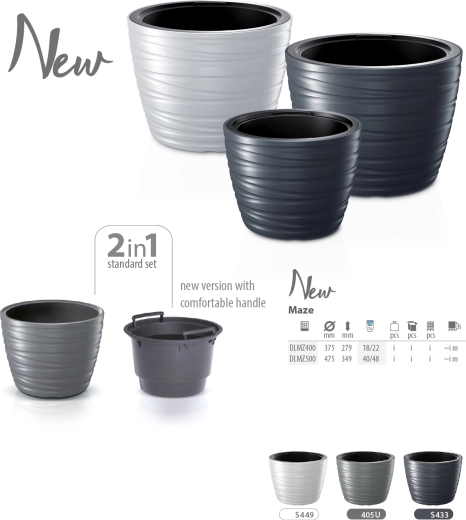 Az elegáns, alacsony MAZE virágcserép 47,5 cm átmérőjű belső betéttel fehér színben stílusos és tartós megoldás beltérre és kültérre egyaránt. A minőségi műanyag fagy- és UV-állóságot biztosít, a betét megkönnyíti a öntözést és a felesleges víz elvezetését, a nagy térfogat pedig elegendő helyet ad a növények növekedéséhez.