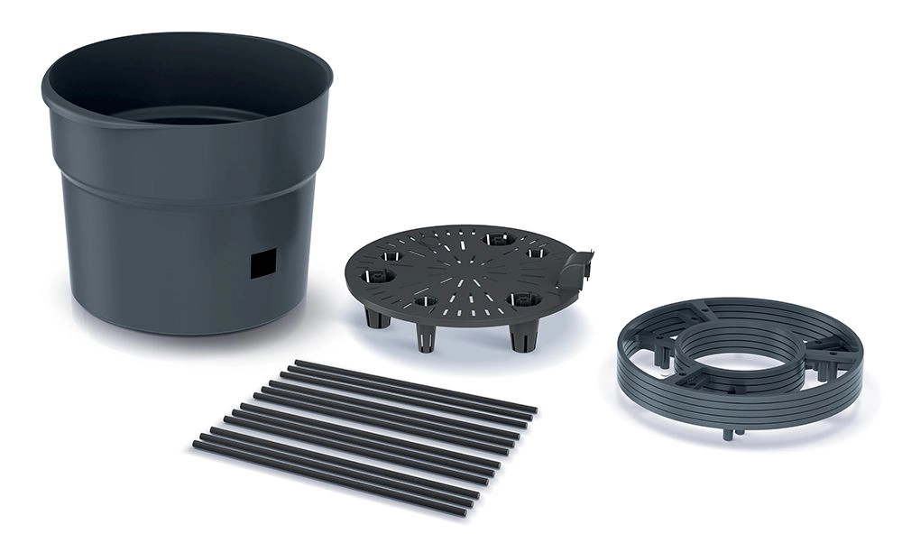 Könnyű, tartós műanyag és átgondolt belső elemek biztosítják a vízelvezetést, csökkentik a túlöntözést, és megkönnyítik a kezelést még erkélyen is.
