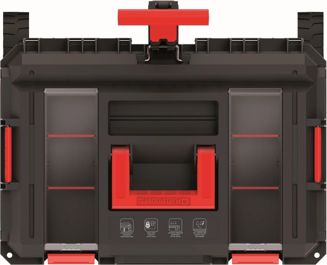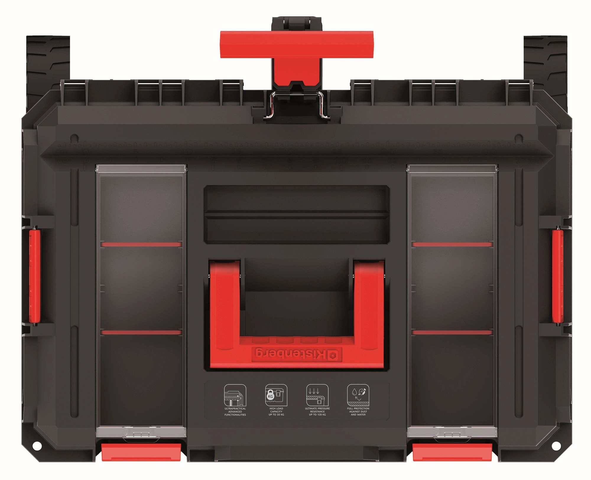 Professzionális, guruló szerszámos koffer Kistenberg X BLOCK LOG kialakítással, amely teljes vízállóságot, masszív bordázott házat és akár 50 kg teherbírást kínál. A teleszkópos fogantyú és a protektoros elasztomer kerekek révén a szállítás nehéz terepen is egyszerű. Az okos belső rendszerezés tartókkal és válaszfalakkal minden szerszámot áttekinthetően és biztonságosan tart bármely munkánál.