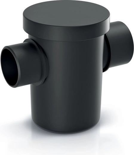 A szűrő három kulcselemből áll: egy házból oldalsó csonkokkal a csőcsatlakozáshoz, egy kivehető kosárból a szennyeződések felfogására, valamint egy felső fedélből a kényelmes karbantartási hozzáféréshez. A tartós műanyag kialakítás hosszú élettartamot és biztonságos működést biztosít változó körülmények között is.
