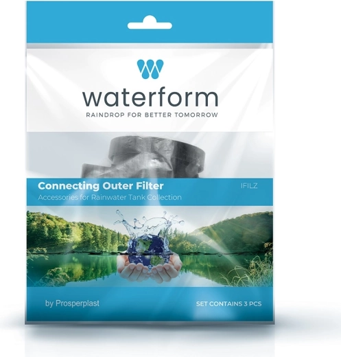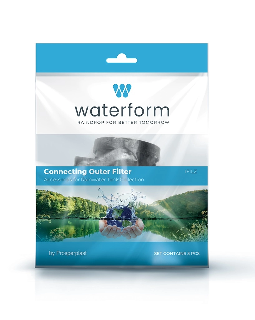 A háromrészes készlet retail csomagolásban érkezik, és készen áll a gyors bekötésre a WATERFORM és ARVES esővízgyűjtő rendszereihez.