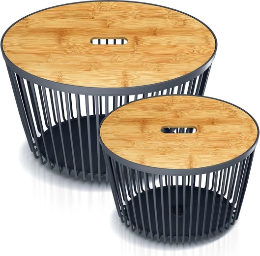 A CLUBO kosárszett okos megoldást kínál a takarításhoz és a rendszerezéshez. A két méretnek (30 és 55 l) köszönhetően könnyedén az aktuális igényekhez igazíthatja a tárolóhelyet – a szennyes ruhától a takarókon át a gyerekjátékokig. Az antracit testet elegáns bambusz fedelek egészítik ki, amelyek elrejtik a tartalmat és természetes hangsúlyt adnak a belső térnek.