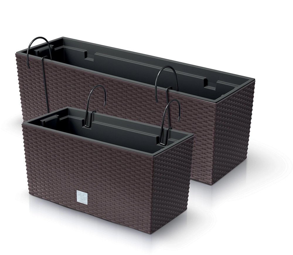 Alakítson ki zöld oázist erkélyén vagy teraszán az elegáns, függeszthető ládával, élethű rattanfonat-imitációval. A kompakt méreteknek és a korlátra akasztható kampóknak köszönhetően helyet takarít meg, miközben dekoratív elemmel gazdagítja környezetét, amely illik a modern és természetes kültéri terekhez is.