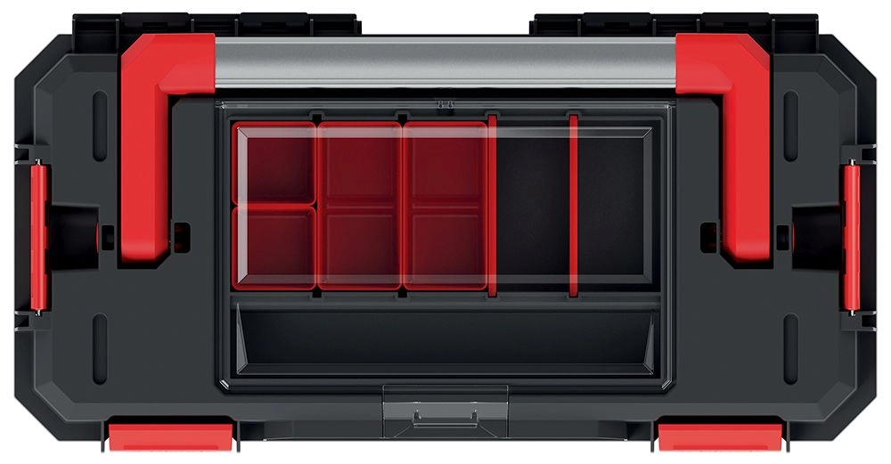 A felső fedél rendezett szervezőt rejt az apró alkatrészek számára. Az átlátszó fedélnek köszönhetően azonnal látja a tartalmat, így felesleges keresgélés nélkül gyorsabban dolgozhat.