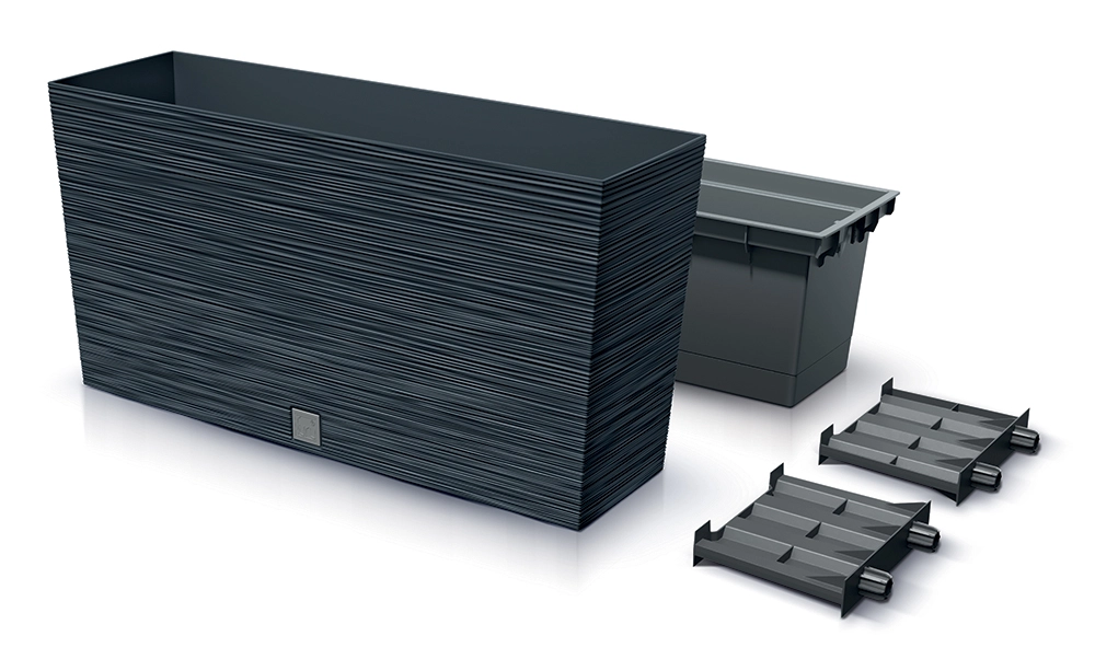 A modern Furu M virágláda letisztult dizájnt ötvöz magas fokú tartóssággal. A bordázott felület dekoratív hatású, és remekül illik a modern építészethez és a természetes anyagokhoz. Az UV-védelemnek és a strapabíró műanyagnak köszönhetően beltéren és kültéren használva is megőrzi színét és formáját.