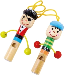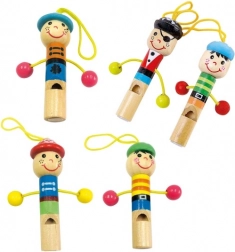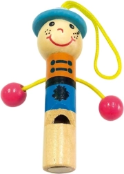 Gyermek fa fütyülő, amelyet festett figurák díszítenek, nemcsak szórakoztató, hanem praktikus ajándék is. A fütyülő tömör fából készült, és ártalmatlan festékkel van lakkozva, ami biztosítja a hosszú élettartamot és a gyermekek biztonságát. A kellemes, hangos hangzásnak köszönhetően különböző tevékenységek során is használható, mint például a focizás vagy jelző célokra.
