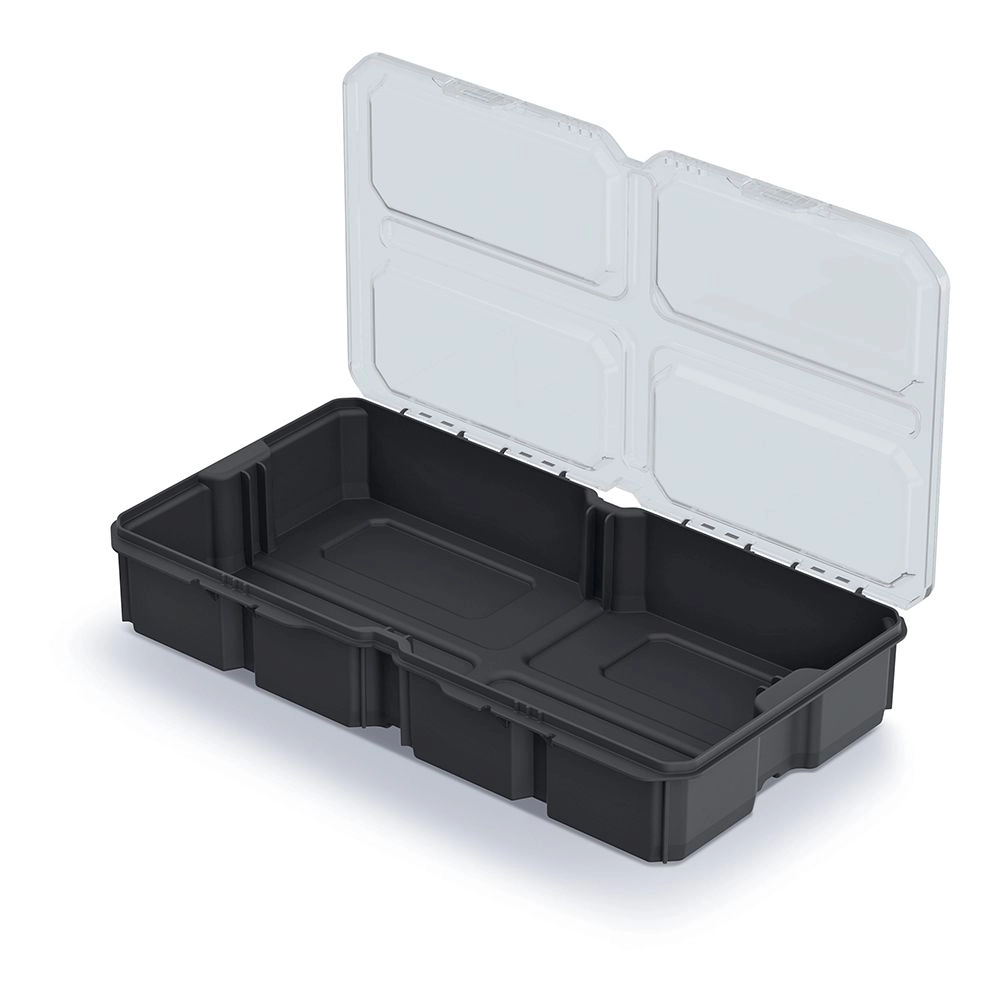 A három kivehető elválasztónak köszönhetően könnyedén beállíthatja a rekeszek méretét az aktuális igények szerint. A kompakt méretek kényelmes hordozhatóságot és tárolást tesznek lehetővé – ideális választás barkácsolóknak, szerviztechnikusoknak és hobbiprojektekhez.
