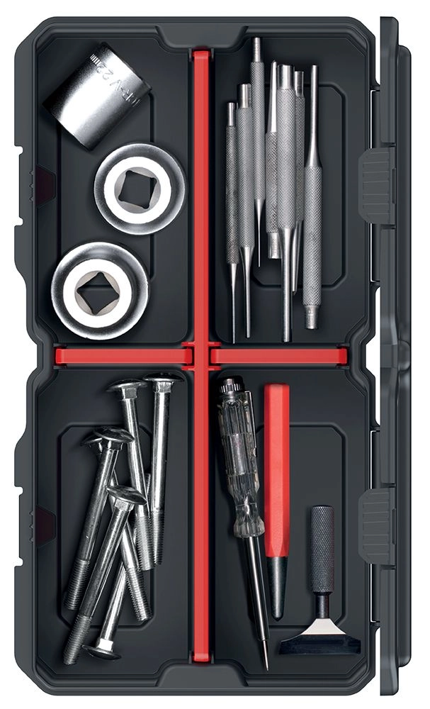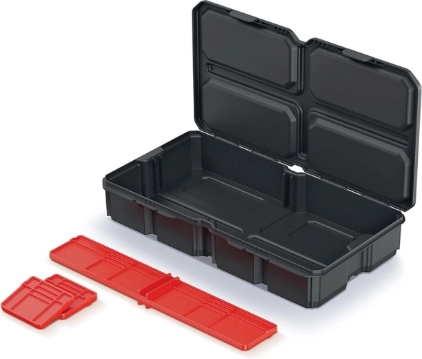 Praktikus rendező apró szerszámokhoz és kötőelemekhez, kompakt 28,5 × 15,8 × 5,7 cm-es méretben. A tartós műanyag, a átlátszó fedél és a három kivehető elválasztó révén könnyedén a saját igényeihez igazíthatja a belső teret. Ideális műhelybe, garázsba és íróasztalra.