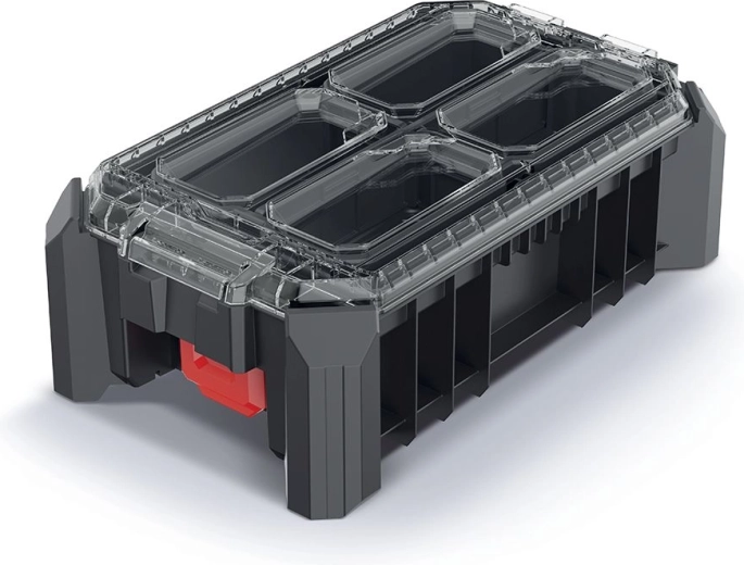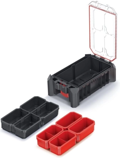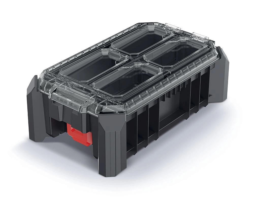 A 36,8 × 22,8 × 12,6 cm méretű MSX rendező megbízható megoldás szerszámok, kötőelemek és apró alkatrészek áttekinthető tárolására. Az átlátszó fedél gyors vizuális ellenőrzést biztosít, míg a rendkívül tartós műanyagból készült masszív kialakítás hosszú élettartamot nyújt még intenzív használat mellett is.
