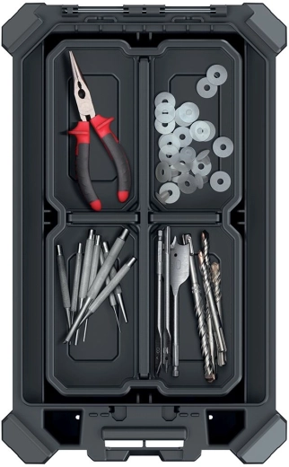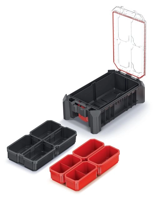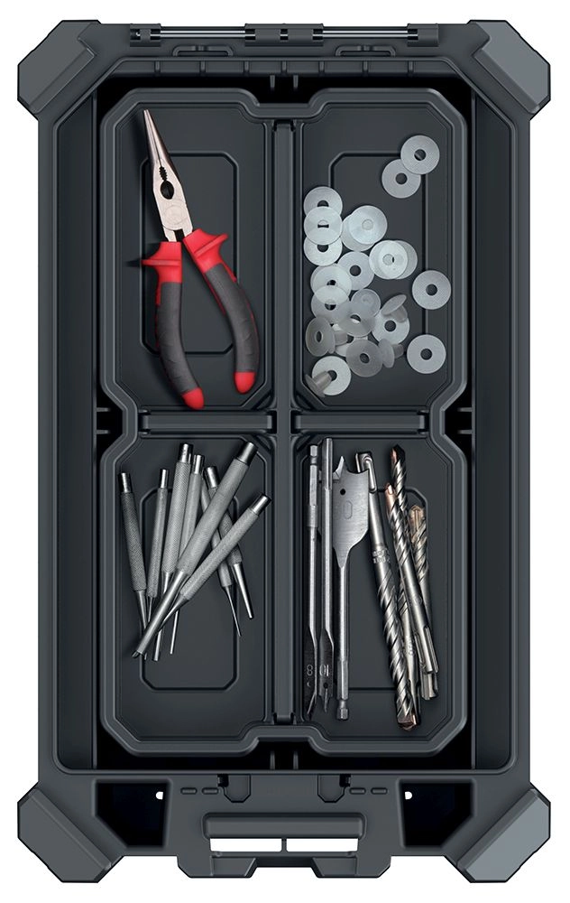 A kivehető válaszfalaknak köszönhetően könnyedén a saját igényeihez igazíthatja a belső teret. A moduláris kialakítás ideális profiknak és hobbifelhasználóknak egyaránt – a rendező az MSX sorozat további elemeivel összekapcsolható, így egységes, hordozható és bővíthető tárolórendszer hozható létre.