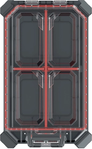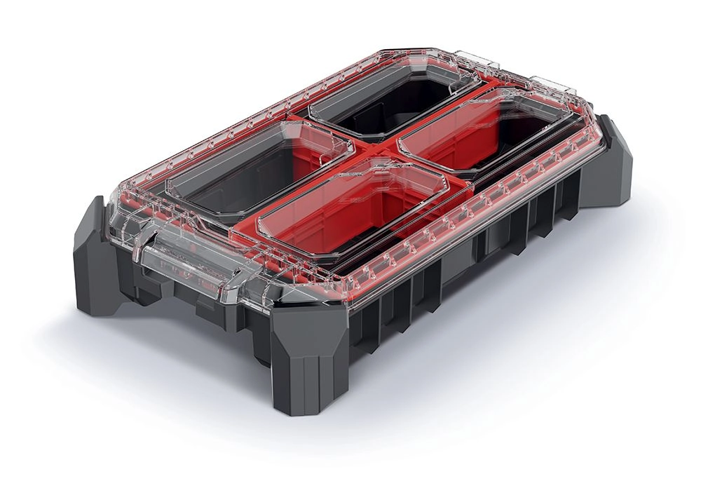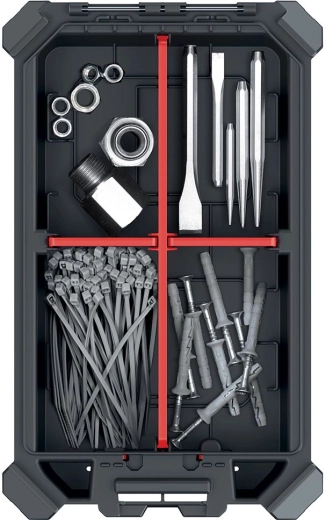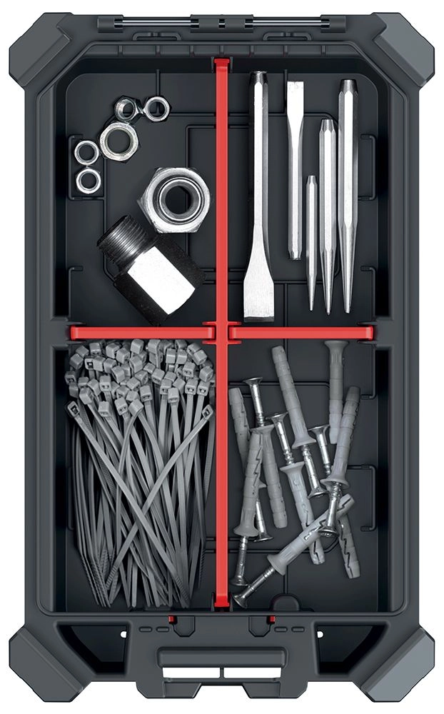 A kivehető válaszfalak lehetővé teszik a rekeszek elrendezésének gyors módosítását a csavarok, tiplik vagy bitek méretéhez igazítva.