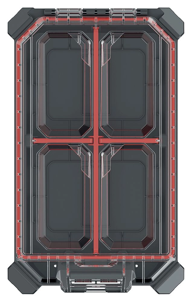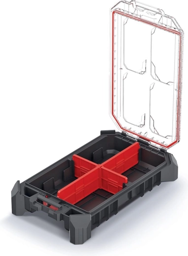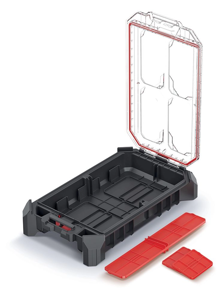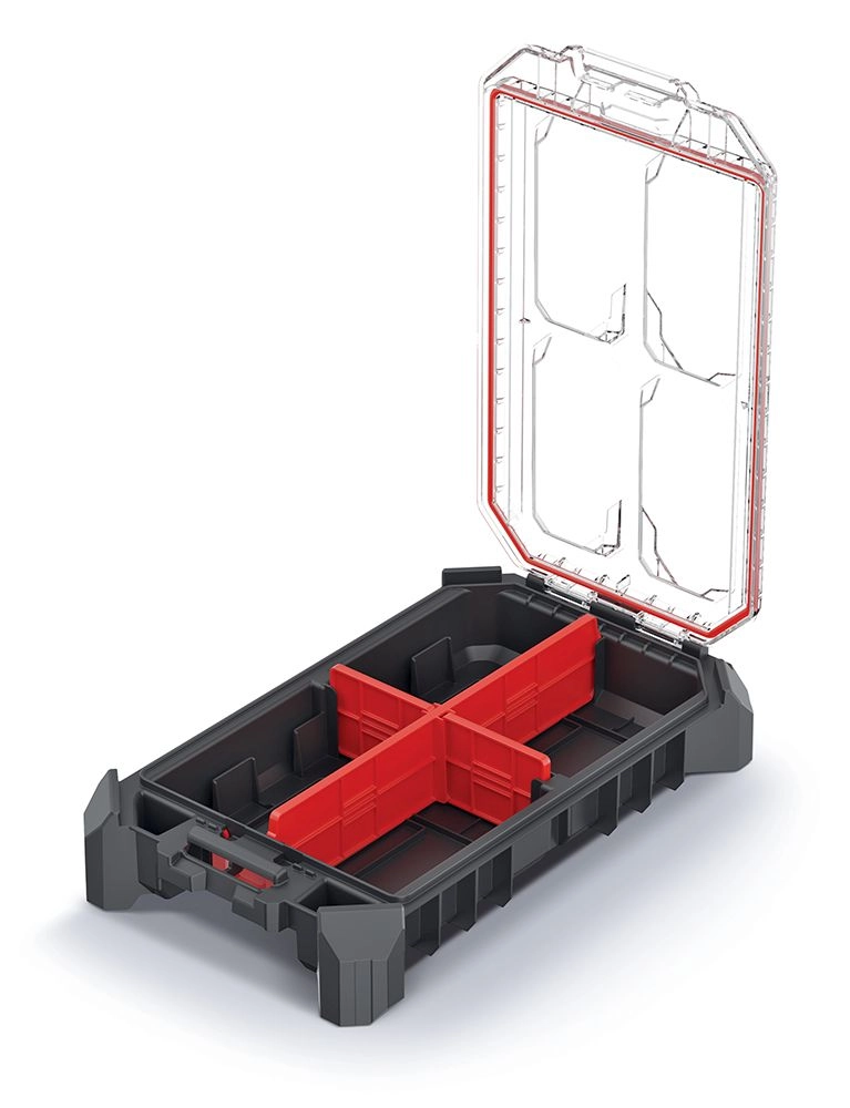 A három kivehető elválasztónak köszönhetően a belső elrendezés könnyen, igény szerint személyre szabható. A minőségi tömítés védi a tartalmat a portól és a víztől, így a rendezőre a műhelyben, építkezésen és gyakori szállítás közben is számíthat. Az ergonomikus fogantyú megkönnyíti a hordozást, az MSX reteszelő rendszer pedig biztonságos egymásra rakást és összekapcsolást tesz lehetővé más dobozokkal az egységes rendszer kialakításához.