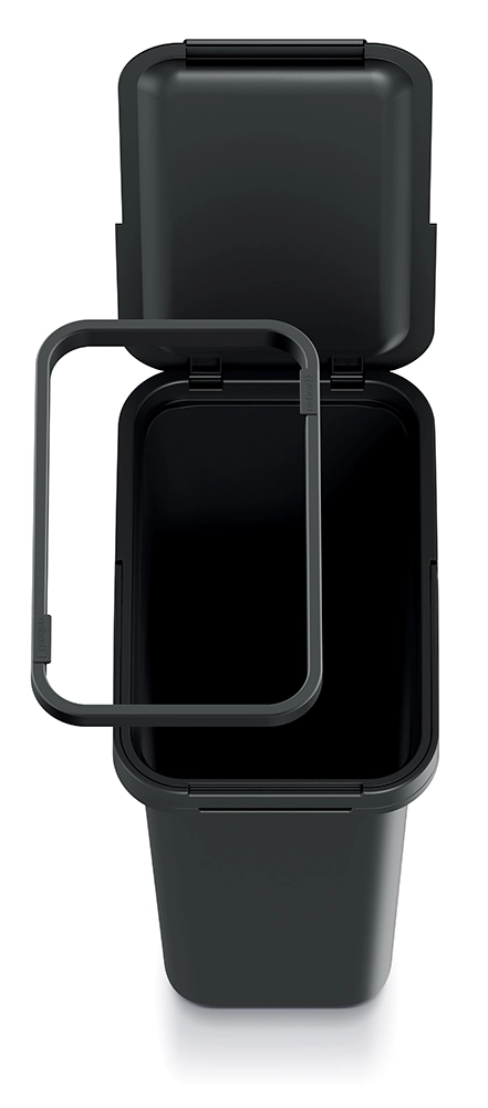 A Systema 12 l szemetes megbízható megoldás a mindennapi hulladékválogatáshoz. Tartós műanyagból készül, könnyen tisztítható, és moduláris kialakításának köszönhetően a sorozat más szemetesivel kombinálható az átlátható rendszerezésért. Az elegáns újrahasznosított fekete és a minimalista megjelenés konyhákba, fürdőszobákba és irodákba is illik.