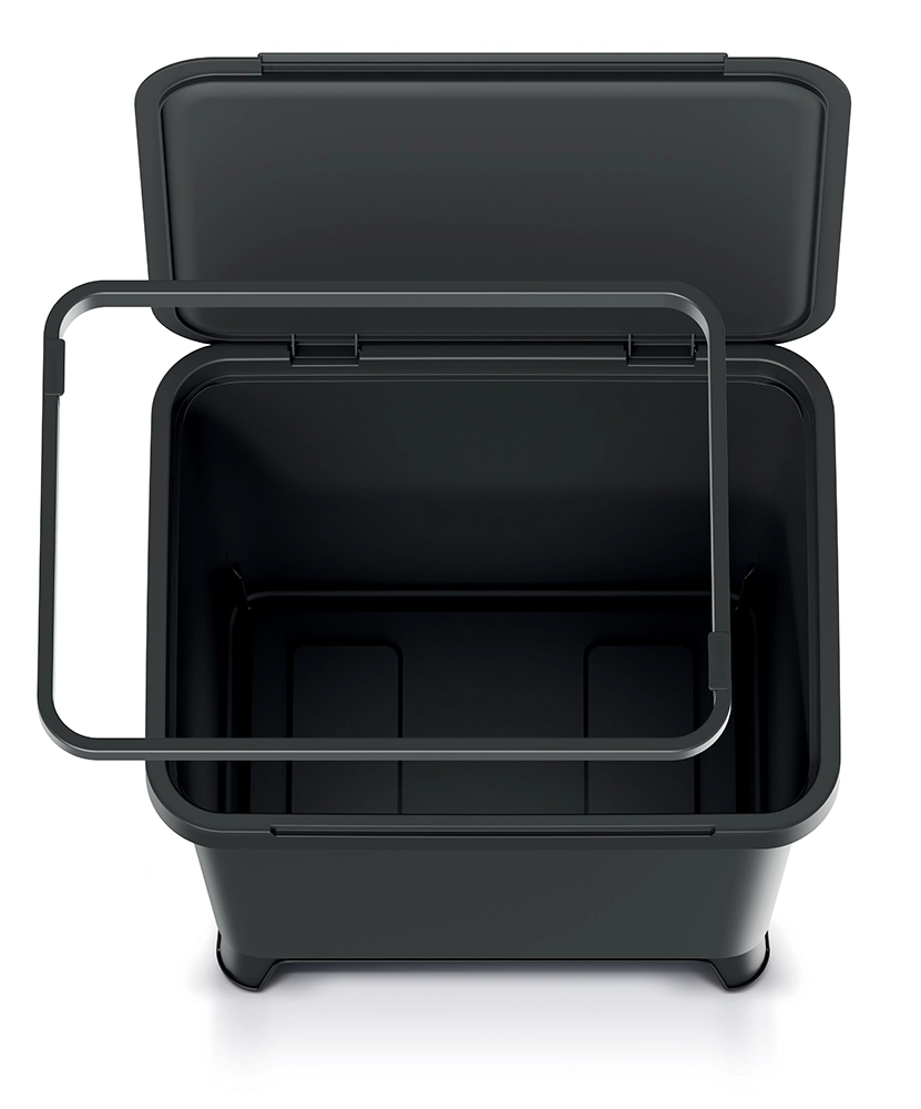 A moduláris Systema sorozat része, amely Red Dot Design Award 2023 díjat nyert. A szabályos formák lehetővé teszik több szemetes egymás mellé helyezését, így áttekinthető szelektáló állomás alakítható ki. A levehető talp gumilábakkal stabilitást biztosít, védi a padlót és megkönnyíti a tisztítást.