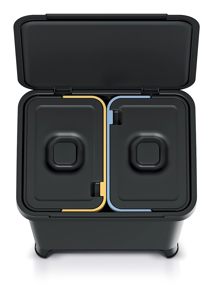 A két, egyenként 10 literes belső edény lehetővé teszi a hulladék egyszerű szétválasztását, rendet teremtve kompromisszumok nélkül.