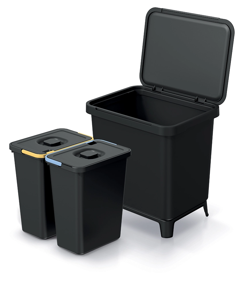 A tartós, újrahasznosított műanyag ellenáll a mindennapi használatnak, a színjelölt fedelek megkönnyítik az azonosítást, a belső betétek pedig könnyen kivehetők.