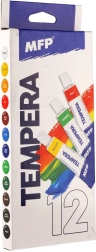 Az MFP temperakészlet praktikus alumínium tubusokban 12 telt árnyalatot kínál iskolai alkotáshoz és otthoni hobbikhoz. A festékeknek magas fedőképességük van, nem tartalmaznak toxikus anyagokat, és kiválóan alkalmasak ecsetes és ujjfestéshez is. Ideális papírra és kartonra, könnyen keverhetők, élénk, karakteres eredményt adnak.