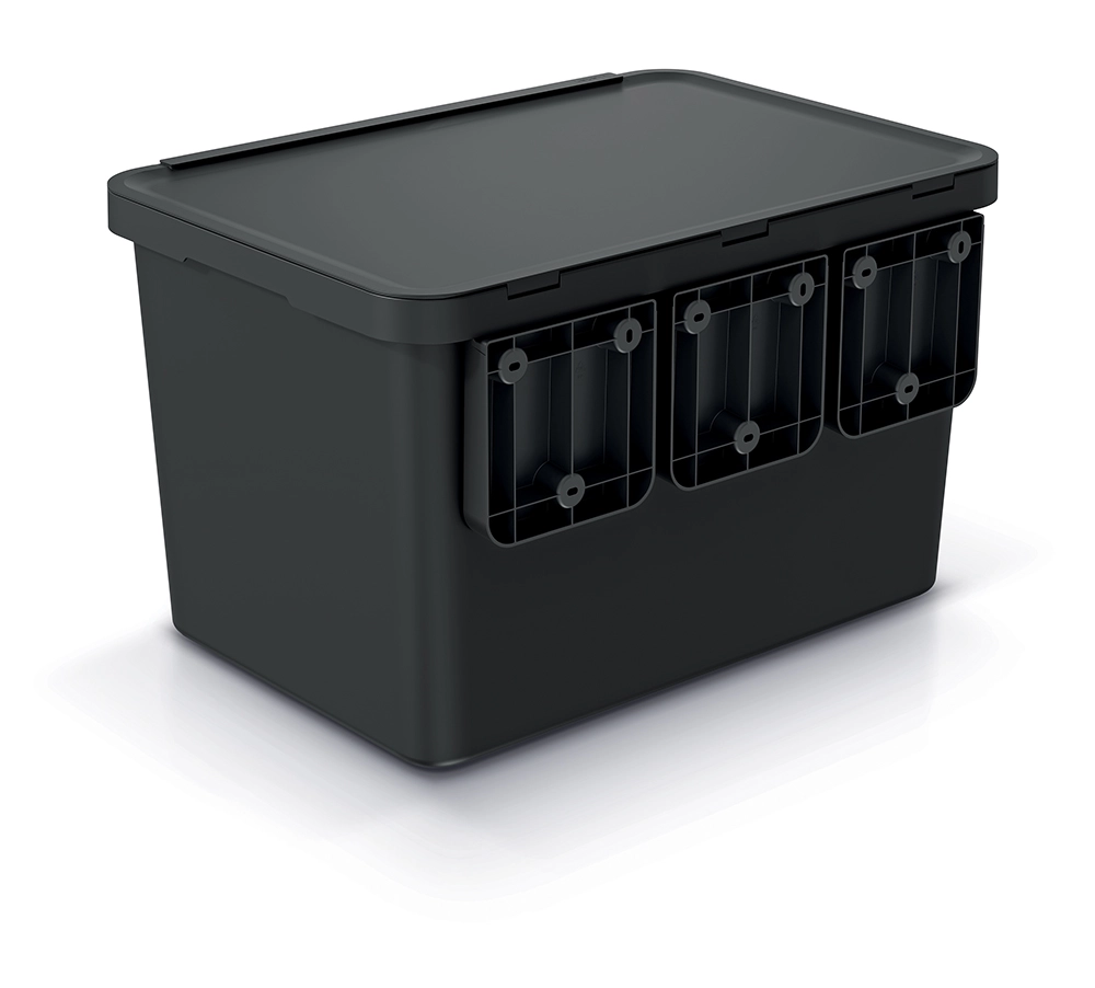 Az eltávolítható, lábakkal ellátott alap szilárdan a helyén tartja a kukát. A minőségi, újrahasznosított műanyag és a masszív ABS fogantyúk hosszú élettartamot biztosítanak.