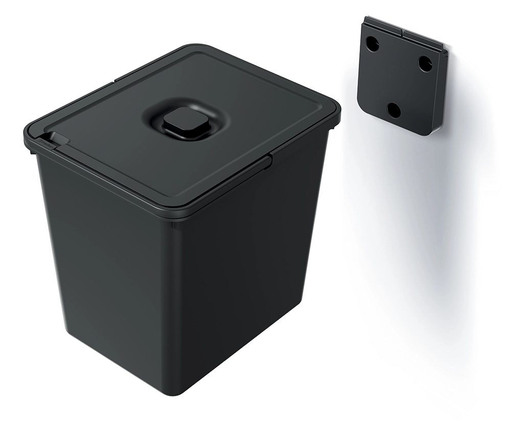 A moduláris felépítés és a szabályos formák megkönnyítik a Systema sorozat további edényeivel való kombinálást – ideális megoldás az átlátható szelektáláshoz. Fali vagy bútor előlapjára történő rögzítési lehetőségének köszönhetően a szemetes könnyen a rendelkezésére álló térhez igazítható. Az újrahasznosított fekete szín és az újrahasznosított anyagok használata kiemeli környezetbarát jellegét.