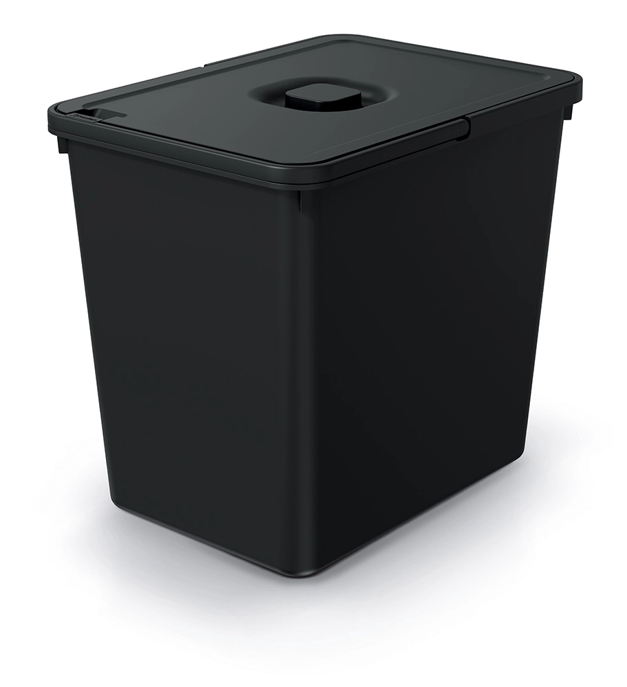 Praktikus, 23 l űrtartalmú szemetes újrahasznosított fekete színben, ideális konyhába, irodába és fürdőszobába. Kínál kompakt méreteket, strapabíró műanyagot és felhajtható FLAP fedőt a kényelmes hulladékbedobáshoz. Moduláris kialakításának köszönhetően könnyen kombinálható a Systema sorozat további edényeivel hatékony szelektáláshoz. Részben újrahasznosított anyagokból készül a környezettudatosabb megközelítésért.