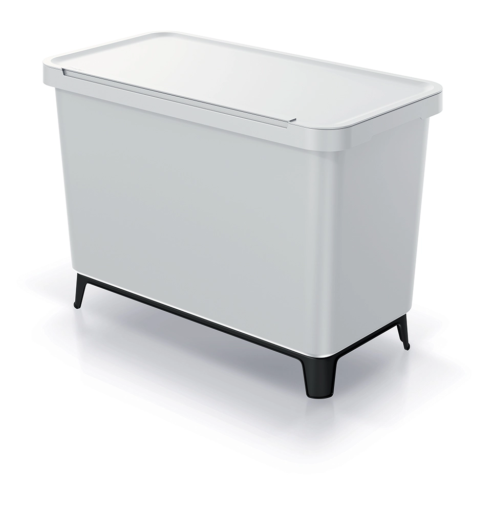 A Prosperplast Systema kompakt megoldás a mindennapos hulladékválogatáshoz. Három, egyenként 10 literes kivehető edény kényelmes szétválasztást tesz lehetővé műanyag, papír és üveg számára, míg a színkódolt, masszív fedelek egyértelművé teszik, mi hová kerül. A hamuszürke árnyalatú, tartós műanyag szerkezet könnyen tisztítható, és remekül illik a konyhába, kamrába vagy a háztartási helyiségbe.