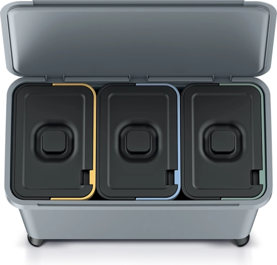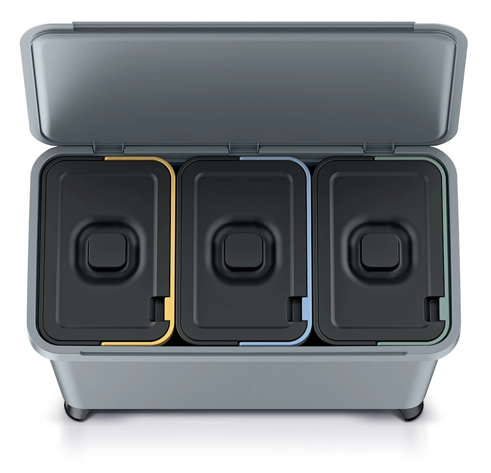 Tartsa rendben környezetét és recikláljon hatékonyan a szelektív szemetes segítségével, összesen 30 literes kapacitással (3×10 l). Az egyszerű, modern dizájn világosszürke színben bármelyik enteriőrbe illeszkedik, miközben a szín szerint megkülönböztetett fedelek megkönnyítik a hulladék helyes szétválogatását.